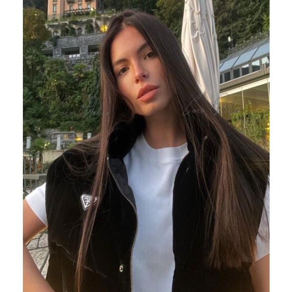 PRADA 프라다 벨벳 크롭 패딩 조끼