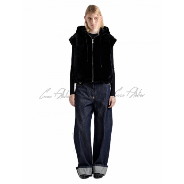 PRADA 프라다 시어링 후드 조끼
